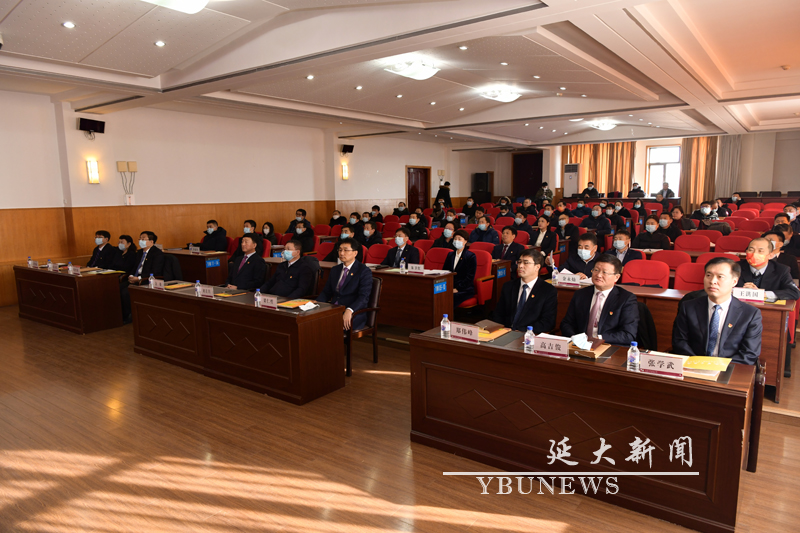 校党委常委金永灿、李彦生、王洪国;党政管理部门、群团组织负责人;各院级党组织书记;部分师生代表参加会议。