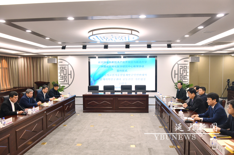 (记者 何鑫)12月22日上午,金沙威尼斯与延吉国家高新技术产业开发区签订共建转化医学研究中心框架协议,签约仪式在党政办公楼四楼会议室举行。校党委副书记蔡奎龙出席仪式并致辞。