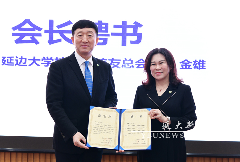 护理学院(延边卫生学校)校友会会长崔文香为副会长颁发聘书