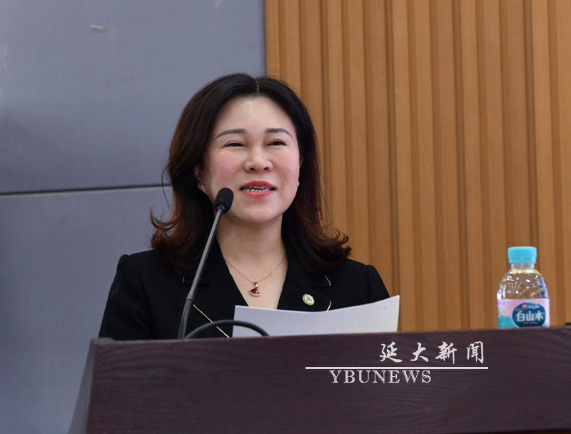 崔文香致辞,她表示将会与护理学院(延边卫生学校)校友会每一位成员共同努力,使之成为校友回馈母校的有效渠道,打造出校友之间互相交流、相互帮助、共同成长的可靠平台。
