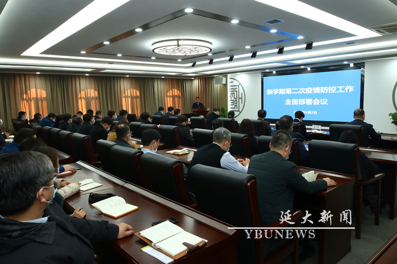 会议由校党委常委、统战部部长、疫情防控办公室主任金永灿主持,各职能部门、学院负责人参加会议。