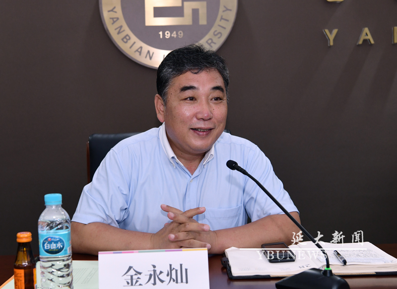 会议由金永灿主持。学校相关职能部门、学院负责人参加会议。
