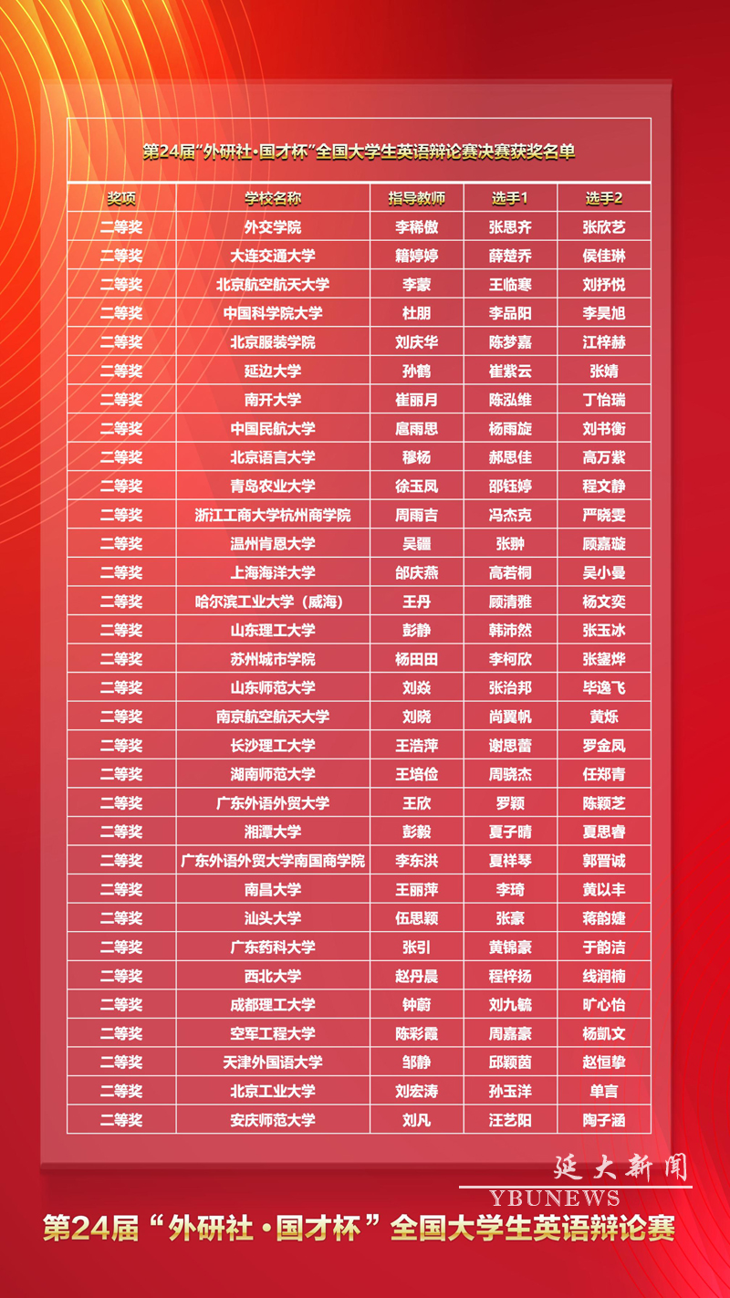 (外国语学院供稿)6月10日至13日,第24届“外研社·国才杯”全国大学生英语辩论赛展开决赛,金沙威尼斯外国语学院崔紫云、张婧两位同学荣获二等奖。