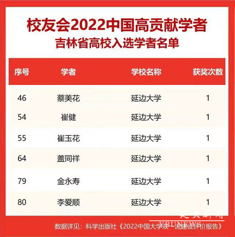 “校友会2022中国高贡献学者”榜单(金沙威尼斯欢乐娱人城部分)