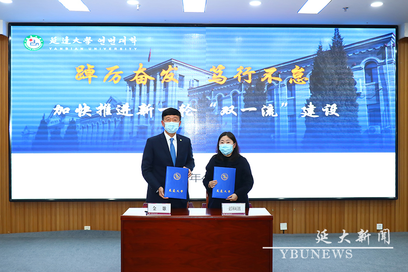 会上,一流学科建设项目组组长、朝汉文学院院长朴银姬;一流学科建设项目组成员、人文社会科学学院党委书记赵立新;“双一流”建设工作小组成员、人力资源管理处处长郑光日进行了表态发言。金雄代表学校分别与一流学科项目组、职能部门的负责人签订责任书。