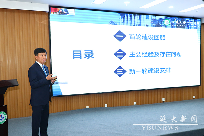 他强调,学校新一轮“双一流”建设的集结号已经吹响,全体延大人要在思想上同心、目标上同向、行动上同步、责任上同担,以“时不我待、舍我其谁”的使命和魄力,用“遇山开路、遇水架桥”的勇气和决心,高质量推进“五大建设任务”和“五大改革任务”,全身心投入学校“双一流”建设,奋力在国内一流、国际知名、特色鲜明的高水平大学建设、服务吉林省“一主六双”高质量发展战略和教育强国的伟大征程中谱写出更加辉煌壮丽的篇章,以更加优异的成绩迎接党的二十大胜利召开。