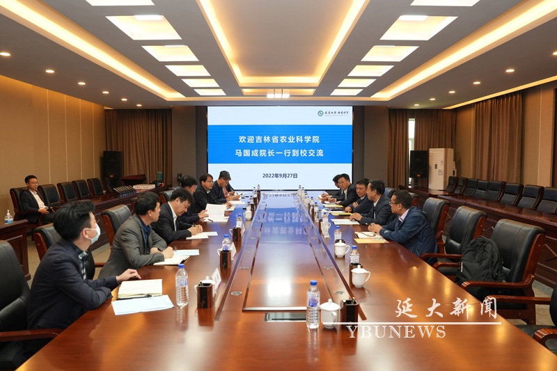 随后,在党政办公楼三楼会议室举行了座谈会,宾主双方就“吉林省肉牛种业创新中心”和“延边黄牛种业创新中心”建设事宜交换了意见,就协同科学研究、联合培养研究生、共同进行项目申报等情况进行了深入的交流和探讨。